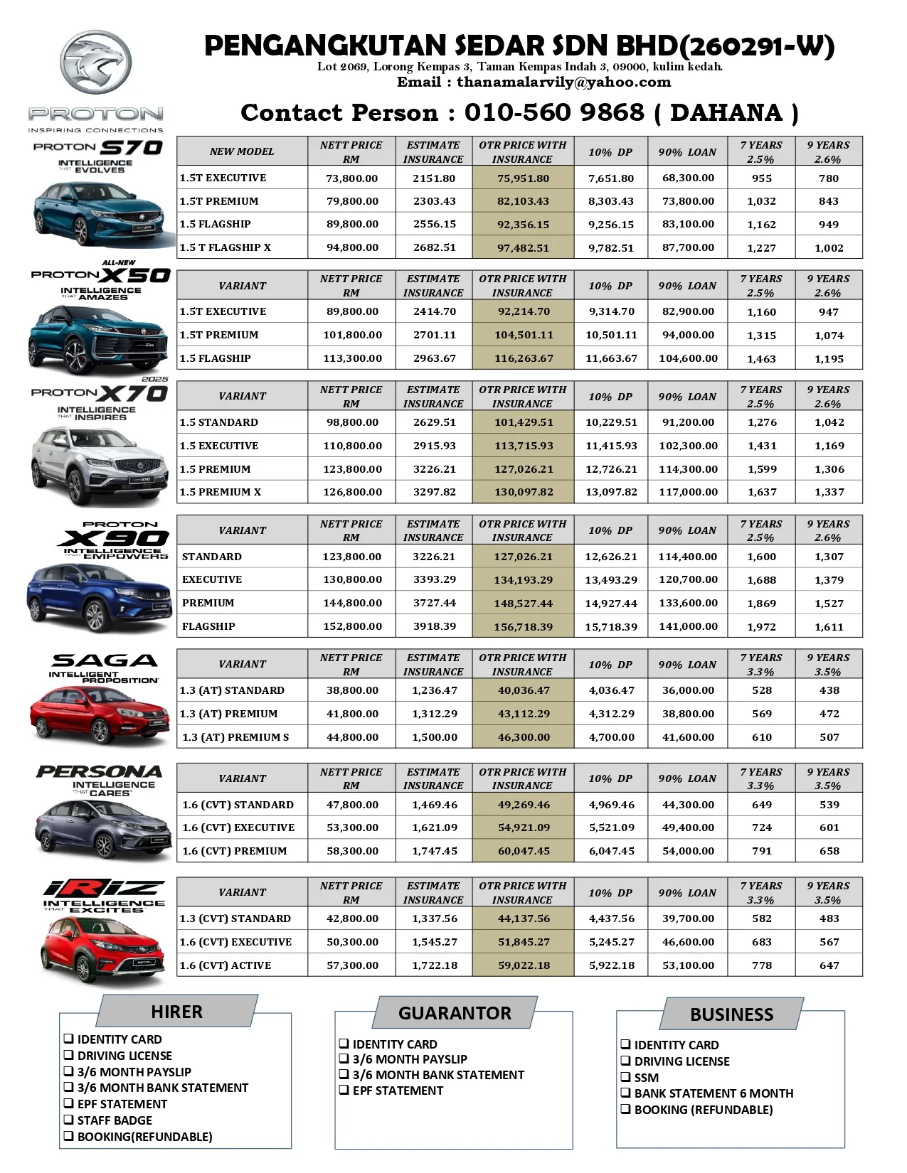 Hubungi saya sekarang untuk sebarang pertanyaan mengenai urusan tempahan kereta Proton baru anda.
